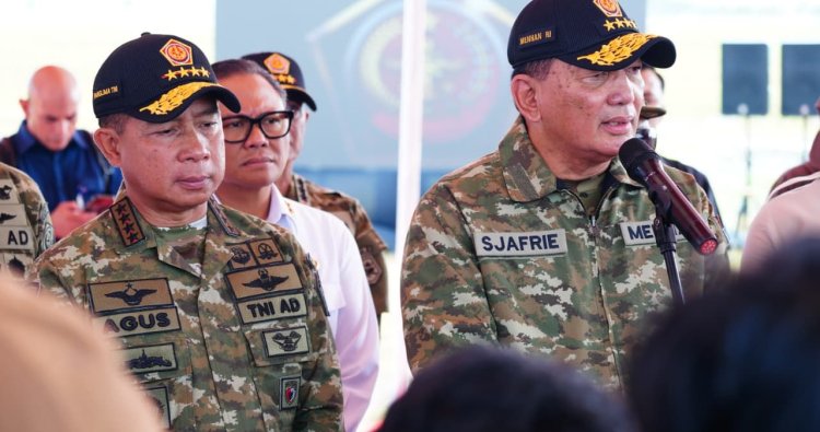 Morowali - Panglima TNI Jenderal TNI Agus Subiyanto mendampingi Menteri Pertahanan RI Sjafrie Sjamsoeddin bersama Jaksa Agung ST Burhanuddin, Kepala BPKP Muhammad Yusuf beserta pejabat terkait, menyaksikan secara langsung pelaksanaan Latihan Komando Gabungan (Kogab) TNI yang terintegrasi Tahun 2025 di kawasan Bandara PT IMIP, Morowali, Sulawesi Tengah, Kamis (20/11/2025).
