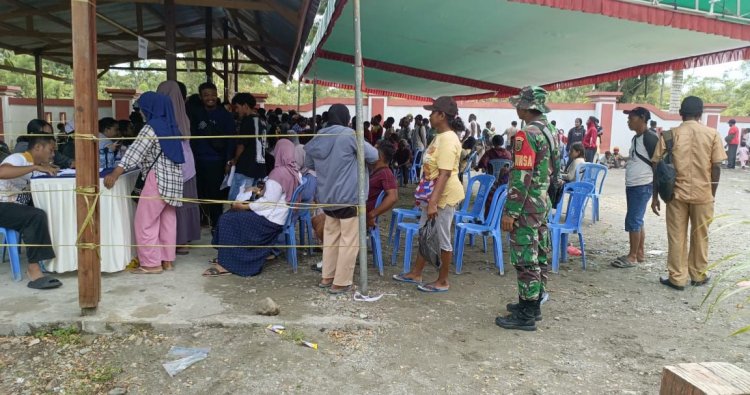 Timika - Bertempat di Kantor Distrik Iwaka, Kab. Mimika, Babinsa Koramil 1710-03/Kuala Kencana Serma Rusdiono dan Kopka Abdul Haris Koli melaksanakan pendampingan penyaluran Bantuan Program Keluarga Harapan (PKH) TA 2025 kepada warga masyarakat, Selasa (18/11/2025).