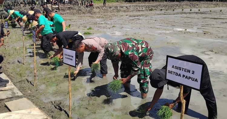 Di lokasi itu, Serda Julius bersama pihak terkait saling bahu-membahu melakukan pendampingan penanaman yang dipimpin oleh Gubernur Papua, Mathius Derek Fakhiri.