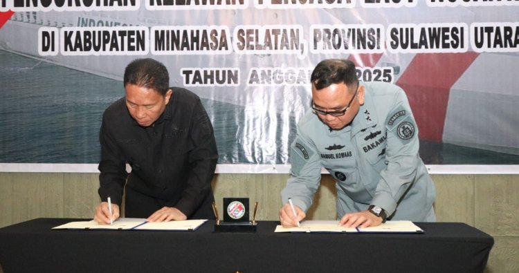 Minahasa Selatan - Sekretaris Utama Bakamla RI, Laksdya TNI Dr. Dr. Samuel H.H. Kowaas, M.Sc., CSBA., secara resmi mengukuhkan 30 Relawan Penjaga Laut Nusantara (Rapala) di Kabupaten Minahasa Selatan, Provinsi Sulawesi Utara, sekaligus menandatangani Naskah Kerja Sama (MoU) antara Bakamla RI dan Pemerintah Kabupaten Minahasa Selatan. Kegiatan berlangsung di salah satu hotel di Minahasa Selatan, Kemarin.