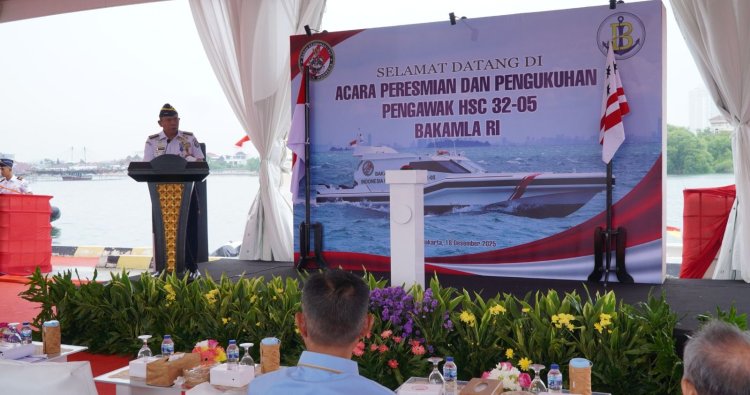 Jakarta - Kepala Bakamla RI Laksdya TNI Dr. Irvansyah, S.H., M.Tr.Opsla., memimpin langsung jalannya acara Peresmian dan Pengukuhan Pengawak High Speed Craft (HSC) 32-05, di Dermaga Bakamla RI Muara Baru, Jakarta Utara, Kamis (18/12/2025).