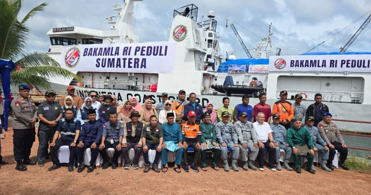 Batam – Lagi, Bakamla RI secara resmi melepas keberangkatan KN. Pulau Nipah-323 yang membawa 92, 2 ton bantuan kemanusiaan untuk disalurkan ke wilayah dambak banjir Aceh di Lhokseumawe, bertempat di Dermaga Macgobar, Batam, Kamis (18/12/2025). Direktur Operasi Udara Maritim Laksma Bakamla Bambang Somantri, S.I.P., M.Si melepas keberangkatan KN. Pulau Dana-323 yang dikomandani Letkol Bakamla Umar Dhani ini menjadi unsur kedua yang diberangkatkan setelah sebelumnya KN. Pulau Nipah-321 mengirimkan bantuan tahap pertama sebanyak 70 ton.