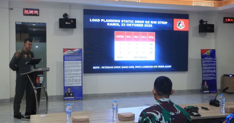 Makassar - Lanud Sultan Hasanuddin mendukung pelaksanaan Latihan Terjun Payung Pendidikan Dasar Para Divisi Infanteri 3 Kostrad TA. 2025 dengan Droping Zone di Grass Trip Runway 13/31 Lanud Sultan Hasanuddin, Kamis (23/10/2025).