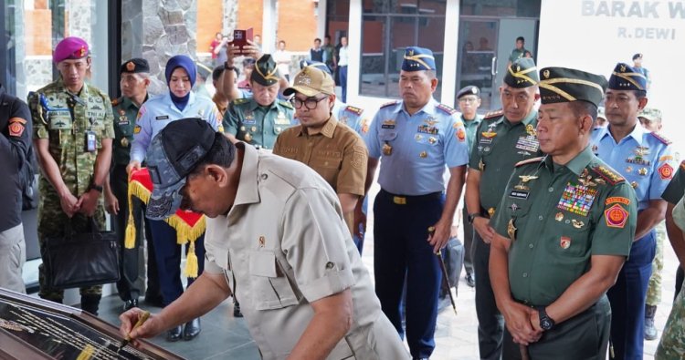 Usai peresmian, Panglima TNI bersama Menteri Pertahanan RI meninjau langsung sejumlah fasilitas penunjang pendidikan, meliputi barak wanita dan pria, ruang makan, serta dapur yang disiapkan untuk mendukung kegiatan belajar mengajar di lingkungan Kodiklat TNI. (Puspen TNI)