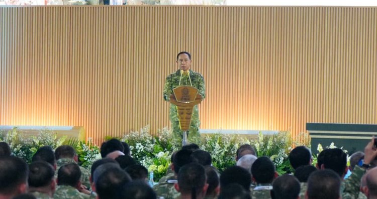 Jakarta - Panglima TNI Jenderal TNI Agus Subiyanto memimpin Rapat Pimpinan (Rapim) TNI Tahun 2026 yang digelar di GOR A. Yani, Mabes TNI, Cilangkap, Jakarta Timur, Selasa (10/2/2026). Rapim TNI dihadiri Menteri Pertahanan Republik Indonesia Sjafrie Sjamsoeddin, Kepala Staf TNI Angkatan Darat Jenderal TNI Maruli Simanjuntak, Kepala Staf TNI Angkatan Laut Laksamana TNI Muhammad Ali, serta Kepala Staf TNI Angkatan Udara Marsekal TNI Mohamad Tonny Harjono, serta diikuti 514 Perwira Tinggi dan Perwira Menengah TNI dari tiga matra.