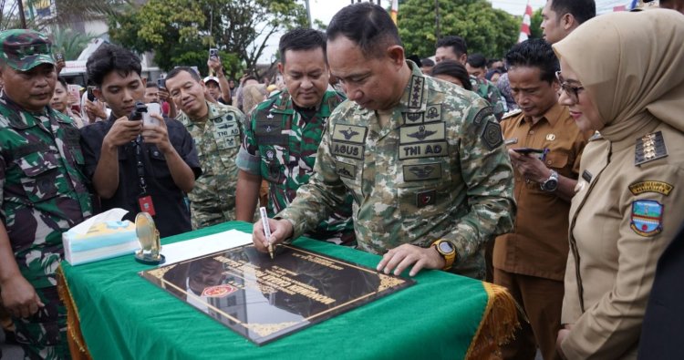 Bandung - Panglima TNI Jenderal TNI Agus Subiyanto meresmikan Monumen Panser Saladin yang berlokasi di Bundaran Alun-Alun Cijulang, Kabupaten Pangandaran, Jawa Barat, Selasa (20/1/2026). Peresmian tersebut merupakan bagian dari upaya TNI dalam menghadirkan ruang publik bernilai sejarah dan edukasi guna menumbuhkan semangat nasionalisme serta kecintaan masyarakat terhadap bangsa dan negara.