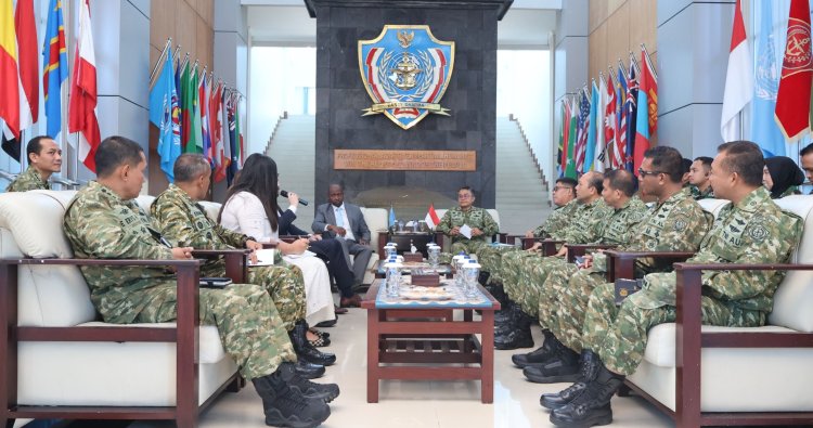 Bogor - Komandan Pusat Misi Pemeliharaan Perdamaian (PMPP) TNI Brigjen TNI Iwan Bambang Setiawan, S.I.P., menerima Courtessy Call (CC) Delegasi United Nations Mine Action Service (UNMAS) yang diketuai oleh Raymond Kemei selaku Team Leader bersama David Markus Fritschi sebagai Training Officer, bertempat di Hall Markas Komando (Mako) PMPP TNI. Sentul, Bogor. Selasa (3/2/2026). Kunjungan ini mengawali Explosive Hazard Awareness Training–Improvised Explosive Device (EHAT–IED) yang berlangsung tanggal 2–6 Februari 2026.