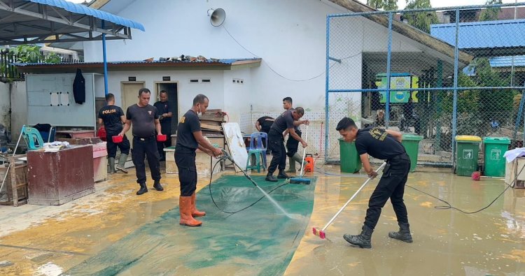 Langkat — Personel Satuan Brimob Polda Sumatera Utara melaksanakan kegiatan pembersihan lingkungan sekolah yang terdampak banjir di SMA Negeri 1 Tanjung Pura, Kabupaten Langkat, Minggu (28/12/2025). Kegiatan ini difokuskan pada ruang kelas, halaman sekolah, saluran drainase, serta fasilitas penunjang pendidikan lainnya yang dipenuhi lumpur, sampah, dan sisa material banjir, guna memulihkan kondisi sekolah agar dapat kembali digunakan oleh para siswa dan tenaga pendidik.