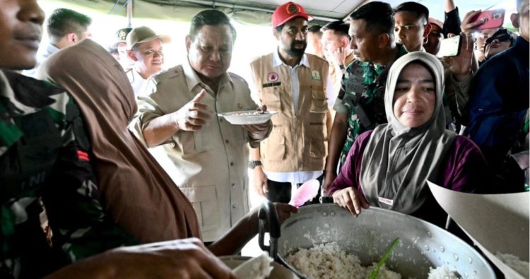 Perhatian Presiden tak berhenti di situ. Ia lantas bergerak menuju dapur umum, sebuah simpul kehidupan bagi para pengungsi. Di sana, Presiden Prabowo meninjau langsung kesiapan distribusi pangan dan berdialog dengan para relawan. Tak lupa, beliau turut mencicipi menu makan siang yang disiapkan: nasi hangat berpadu ikan tongkol yang menjadi santapan sehari-hari para pengungsi. Momen ini menunjukkan kedekatan dan empati Presiden terhadap kondisi masyarakat yang terdampak.