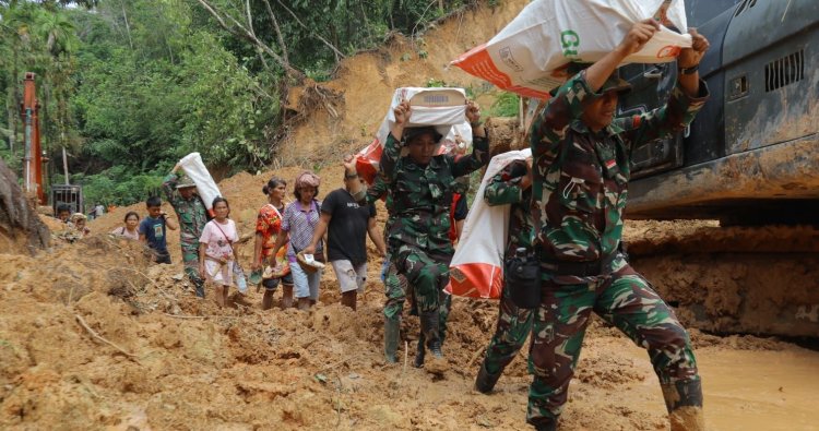 Tapanuli Tengah - Prajurit TNI dari Satuan Tugas (Satgas) Yonif 122/Tombak Sakti (TS) Kodam I/BB kembali menunjukkan komitmen TNI dalam membantu masyarakat terdampak bencana alam. Dengan menghadapi medan berat serta akses jalan yang terputus total, prajurit bergerak menembus wilayah terisolir untuk menyalurkan bantuan logistik di Kecamatan Sitahuis, Kabupaten Tapanuli Tengah, Selasa (2/12/2025).