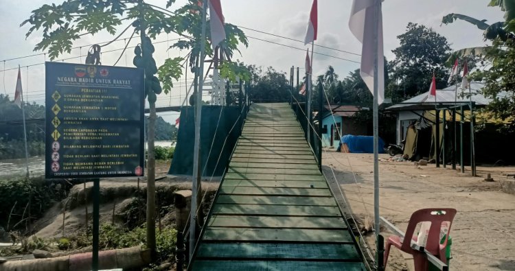 Renovasi Jembatan Gantung Garuda menjadi bukti komitmen TNI dalam mendukung pembangunan daerah dan meningkatkan kesejahteraan rakyat. TNI akan terus hadir dan bersinergi dengan pemerintah daerah serta seluruh komponen bangsa dalam mengatasi berbagai kesulitan masyarakat di wilayah. (Puspen TNI)