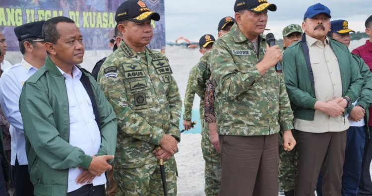 Babel - Panglima TNI Jenderal TNI Agus Subiyanto bersama Menteri Pertahanan Sjafrie Sjamsoeddin, Menteri ESDM Bahlil Lahadalia, dan Jaksa Agung ST Burhanuddin meninjau dua lokasi tambang timah ilegal yang berhasil disita Satuan Tugas Penertiban Kawasan Hutan (Satgas PKH) di Kabupaten Bangka Tengah, Provinsi Kepulauan Bangka Belitung, Rabu (19/11/2025).