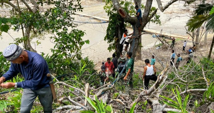 Sebanyak 10 personel Yon TP 854/DK bersama masyarakat setempat terlibat dalam pemasangan pipa untuk mengalirkan air ke permukiman warga di dua dusun, yakni Ulun Bayur dan Nasuh. Sebelumnya, kerusakan infrastruktur akibat bencana membuat distribusi air bersih terganggu.