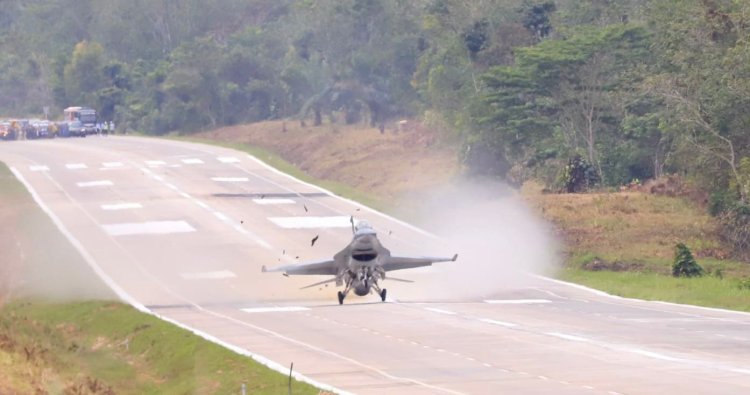 Lampung - TNI berhasil melaksanakan uji coba pendaratan pesawat tempur TNI Angkatan Udara jenis F-16 dan Super Tucano di Ruas Tol Terbanggi Besar–Pematang Panggang–Kayu Agung (JTTS), Provinsi Lampung, Rabu (11/2/2026). Kegiatan ini merupakan bagian dari penguatan kesiapsiagaan operasional serta optimalisasi pemanfaatan infrastruktur strategis nasional dalam mendukung sistem pertahanan negara.