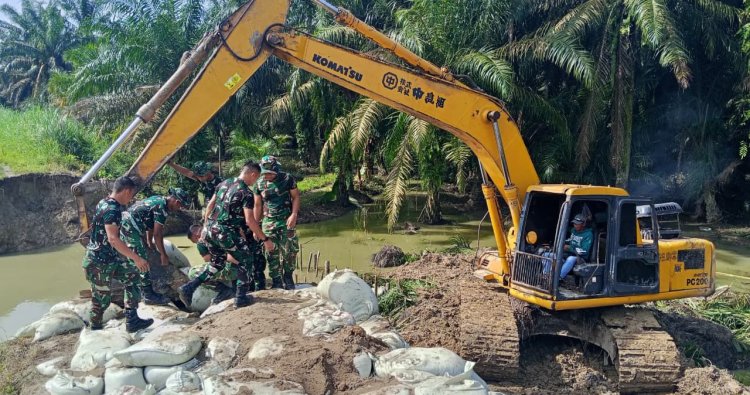 Sumut - Koramil 07/Stabat, Kodim 0203/Langkat, bersama warga Desa Stabat Lama, Kecamatan Wampu, Kabupaten Langkat, melaksanakan perbaikan tanggul yang kembali jebol akibat hujan deras, Minggu (14/12/2025). Perbaikan tersebut dilakukan sebagai langkah antisipasi untuk mencegah terjadinya banjir susulan pasca banjir yang melanda wilayah tersebut beberapa hari sebelumnya.