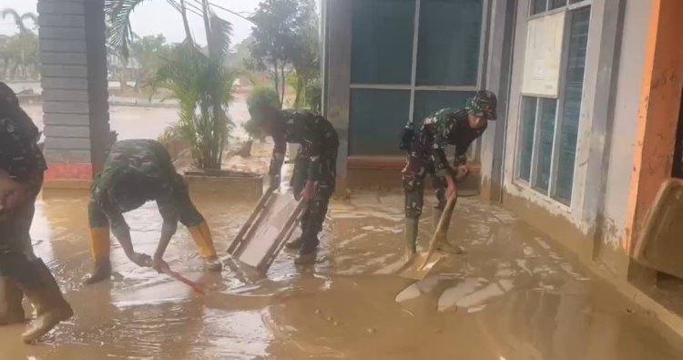 Aceh - TNI mengerahkan sebanyak 30 personel TNI dari Batalyon Infanteri Teritorial Pembangunan (Yonif TP) 853/Bawar Reje Bur ke Kantor Dinas Kependudukan dan Pencatatan Sipil (Dukcapil) Kabupaten Aceh Tamiang untuk melaksanakan pembersihan lumpur pasca banjir dan tanah longsor yang terjadi pada akhir November lalu. Kegiatan berlangsung di Jalan Ir. H. Juanda, Karang Baru, Selasa (9/12/2025).