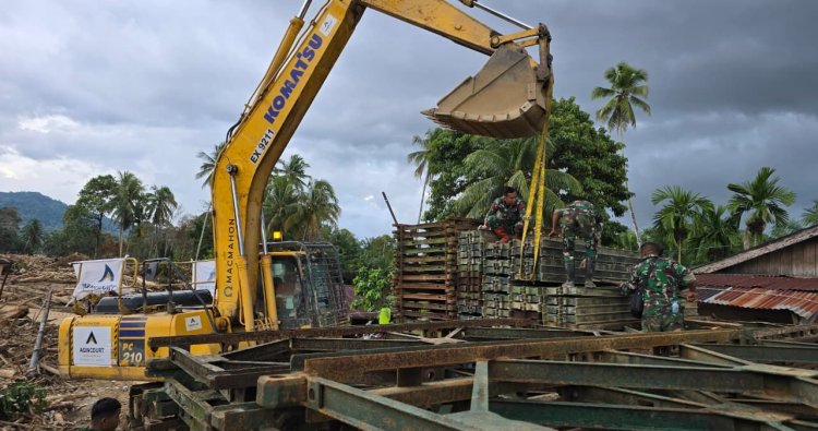Sebanyak 20 personel Yonzipur I/DD bersama dukungan alat berat berupa crane dan excavator dikerahkan untuk mempercepat pembangunan jembatan darurat tersebut. Proses pemasangan terus dipacu mengingat jalur itu merupakan nadi transportasi antara Tapsel Tapteng.