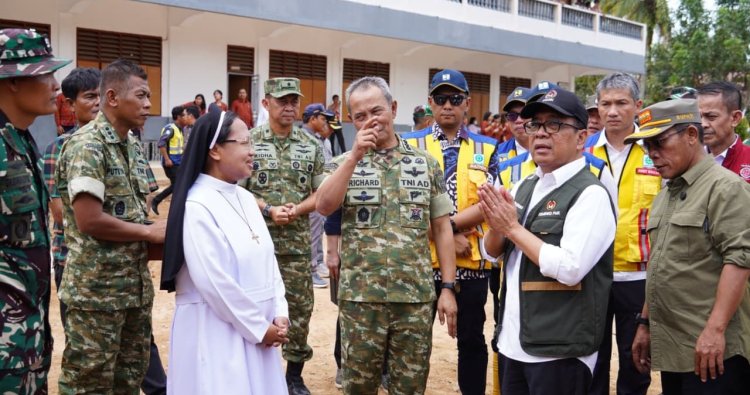Tapanuli Utara - Kasum TNI Letjen TNI Richard Tampubolon selaku Wakil Ketua I Satuan Tugas Percepatan Rehabilitasi dan Rekonstruksi (Satgas PRR) mendampingi Menteri Koordinator Pembangunan Manusia dan Kebudayaan (Menko PMK) Pratikno pada acara penyerahan bantuan stimulan rumah rusak di Kantor Bupati Tapanuli Utara, Tarutung, Kabupaten Tapanuli Utara, Sumatera Utara, Jumat (13/2/2026). Sejumlah pejabat tinggi negara juga turut mengikuti kegiatan secara virtual, di antaranya Menteri Dalam Negeri Tito Karnavian, Menteri Kesehatan Budi Gunadi Sadikin, serta Kepala BNPB Letjen TNI Suharyanto.