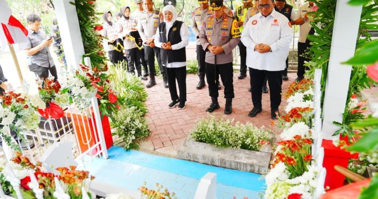 Jatim - Kapolri Jenderal Listyo Sigit Prabowo berziarah ke makam Pahlawan Nasional Marsinah di Kecamatan Sukamoro, Kabupaten Nganjuk, Jawa Timur (Jatim). Ia juga melihat rumah masa kecil dari tokoh buruh tersebut.